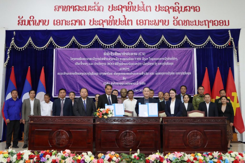 ພິທີເຊັນສັນຍາສຳປະທານ CA ໂຄງການພັດທະນາພະລັງງານໄຟຟາແສງຕາເວັນ ຂະໜາດນ້ອຍ 5 MW ລົງມາໃນຮູບແບບການລົງທຶນກໍ່ສ້າງ,ເປັນເຈົ້າຂອງ ແລະ ດຳເນີນງານ BOO ຢູ່ເຂດ ບ້ານ ໂພນພະ ແລະ ບ້ານ ນາໄຊສະຫ່ວາງ ເມືອງລ້ອງແຈ້ງ ແຂວງໄຊສົມບູນ