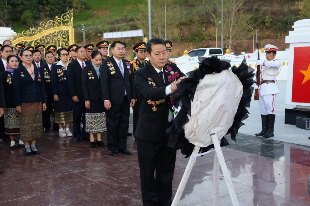 ໃນຕອນເຊົ້າຂອງວັນທີ 1 ທັນວາ 2025 ນີ້ ສະຫາຍ ພອຍຄໍາ ຮຸ່ງບຸນຍວງ, ເລຂາຄະນະບໍລິຫານງານພັກແຂວງ ພ້ອມດ້ວຍ ຮອງເລຂາພັກແຂວງ, ຄະນະປະຈໍາພັກແຂວງ, ກໍາມະການພັກແຂວງ, ຫົວໜ້າພະແນກການ, ອົງການ-ກົມກອງ ອ້ອມຂ້າງແຂວງ ແລະ ການນໍາຫຼັກແຫຼ່ງເມືອງອະນຸວົງ ໄດ້ເຂົ້າວາງກະຕ່າດອກໄມ້ ຢູ່ອະນຸສອນສະຖານ ປະທານ ໄກສອນ ພົມວິຫານ ແລະ ອະນຸສາວະລີຮ່ວມສໍາພັນສູ້ຮົບລາວ – ຫວຽດນາມ ເພື່ອສະແດງຄວາມເຄົາລົບ, ຮູ້ບຸນຄຸນ, ຈົດຈໍາ ແລະ ຈາລຶກເຖິງຄຸນງາມຄວາມດີ ທີ່ມີຕໍ່ປະເທດຊາດຢ່າງລົ້ນເຫຼືອ ທີ່ບັນດາສະຫາຍນັກຮົບ ໄດ້ຄຽງບ່າຄຽງໄຫຼ່ ບົນເສັ້ນທາງປະຫວັດສາດ ທີ່ໄດ້ເສຍສະຫຼະເລືອດເນື້ອ, ເຫື່ອແຮງ ແລະ ອຸທິດຕົນ ເຂົ້າໃນພາລະກິດຕໍ່ສູ້ປົກປັກຮັກສາ ແລະ ປົດປ່ອຍຊາດ ເຮັດໃຫ້ປະເທດຊາດມີຄວາມສະຫງົບປອດໄພ ປະຊາຊົນຢູ່ດີກິນແຊບ ທັງເປັນຜູ້ນໍາທີ່ດີ, ຜູ້ນໍາທີ່ປະເສີດ ແລະ ເປັນວິລະບຸລຸດຂອງຊາດ, ຜູ້ທີ່ໄດ້ນໍາພາການຕໍ່ສູ້ກູ້ຊາດ ຈົນສາມາດຍາດໄດ້ໄຊຊະນະ ແລະ ສະຖາປະນາປະເທດ ສາທາລະນະລັດ ປະຊາທິປະໄຕ ປະຊາຊົນລາວ ຂຶ້ນ ໃນວັນທີ 2 ທັນວາ 1975