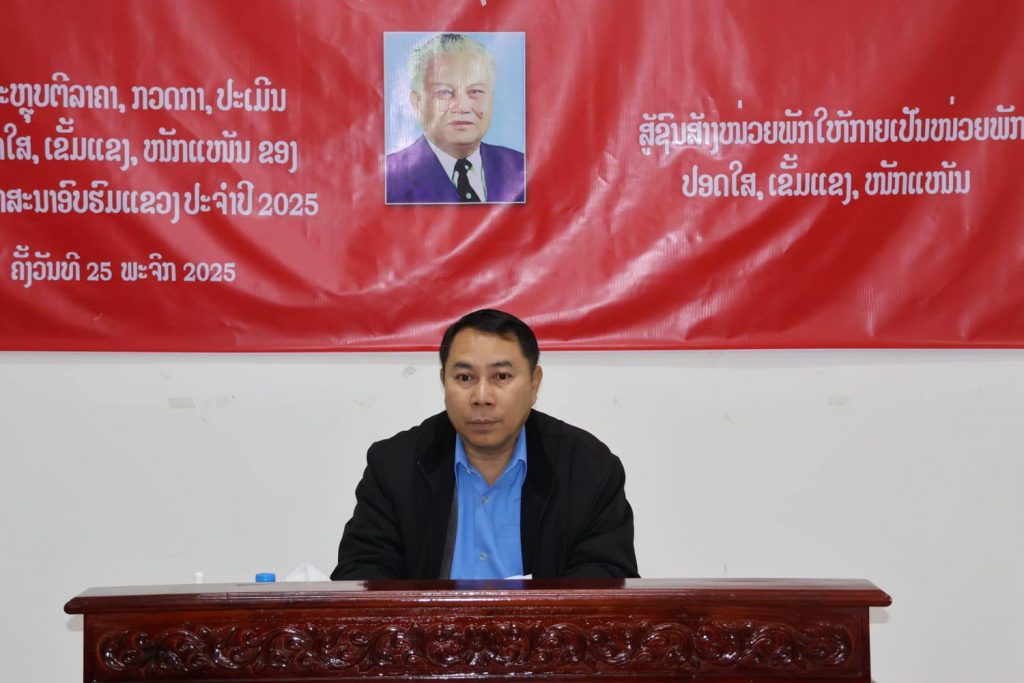 ໂອກາດນີ້ ສະຫາຍ ທອງວັນ ທຳມະວົງ ໄດ້ມີຄຳເຫັນຊີ້ນໍາຕໍ່ກອງປະຊຸມ ຊຶ່ງການປະເມີນໜ່ວຍພັກປອດໃສ, ເຂັ້ມແຂງ, ໜັກແໜ້ນ ແມ່ນເປັນການສະຫຼຸບຕີລາຄາຄືນການຈັດຕັ້ງປະຕິບັດໜ້າທີ່ວຽກງານ ກໍຄືບັນດາຄາດໝາຍ ທີ່ໄດ້ດໍານົດໄວ້ໃນແຜນການກໍ່ສ້າງໜ່ວຍພັກປອດໃສ, ເຂັ້ມແຂງ, ໜັກແໜ້ນ ປະຈຳປີ 2025 ການປະເມີນແມ່ນຈະໃຫ້ແນນ ຕາມ 5 ດ້ານ ຄື: ດ້ານການເມືອງ, ດ້ານແນວຄິດ, ດ້ານການຈັດຕັ້ງ, ດ້ານແບບແຜນການນໍາພາ, ການນໍາພາປະຕິບັດໜ້າທີ່ການເມືອງ ແລະ ມີຄວາມເປັນເອກະພາບ ເພື່ອຊອກໃຫ້ເຫັນຈຸດດີ, ຈຸດອ່ອນຂໍ້ຄົງຄ້າງຂອງບັນດາສະມາຊິກພັກແຕ່ລະສະຫາຍໃນໜ່ວຍ ເພື່ອປັບປຸງຈຸດອ່ອນ ແລະ ໃຫ້ມີຄວາມເຂັ້ມແຂງ, ໜັກແໜ້ນທາງດ້ານການເມືອງ-ແນວຄິດ.